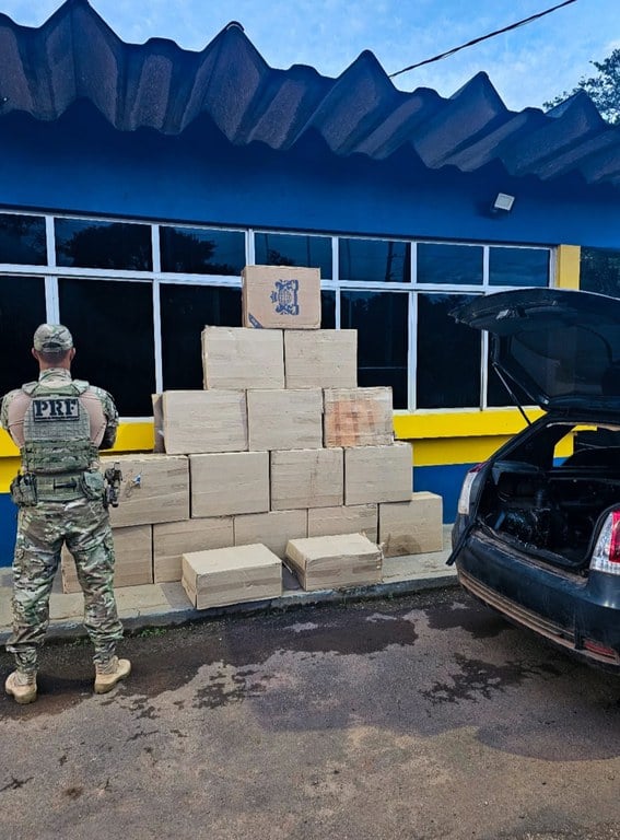 Uma ação da Polícia Rodoviária Federal (PRF) apreendeu, na madrugada de 22 de fevereiro, 7.500 maços de cigarro de origem estrangeira, 120 unidades de desodorante sem a devida documentação fiscal, e o veículo que transportava a mercadoria.